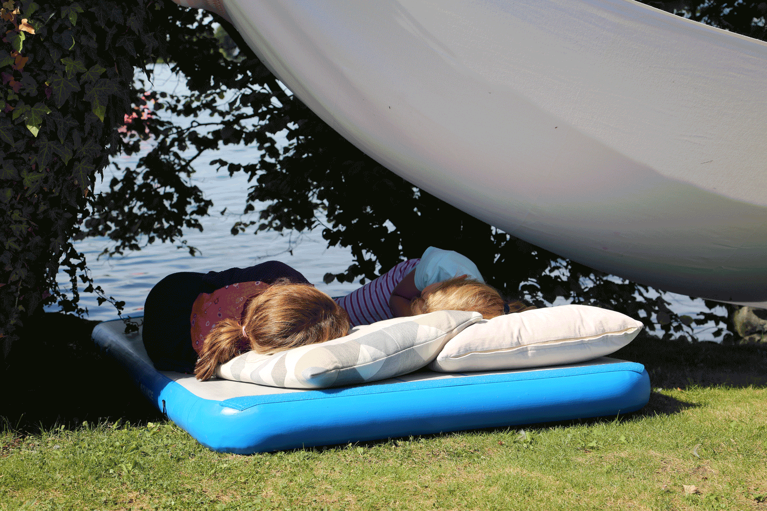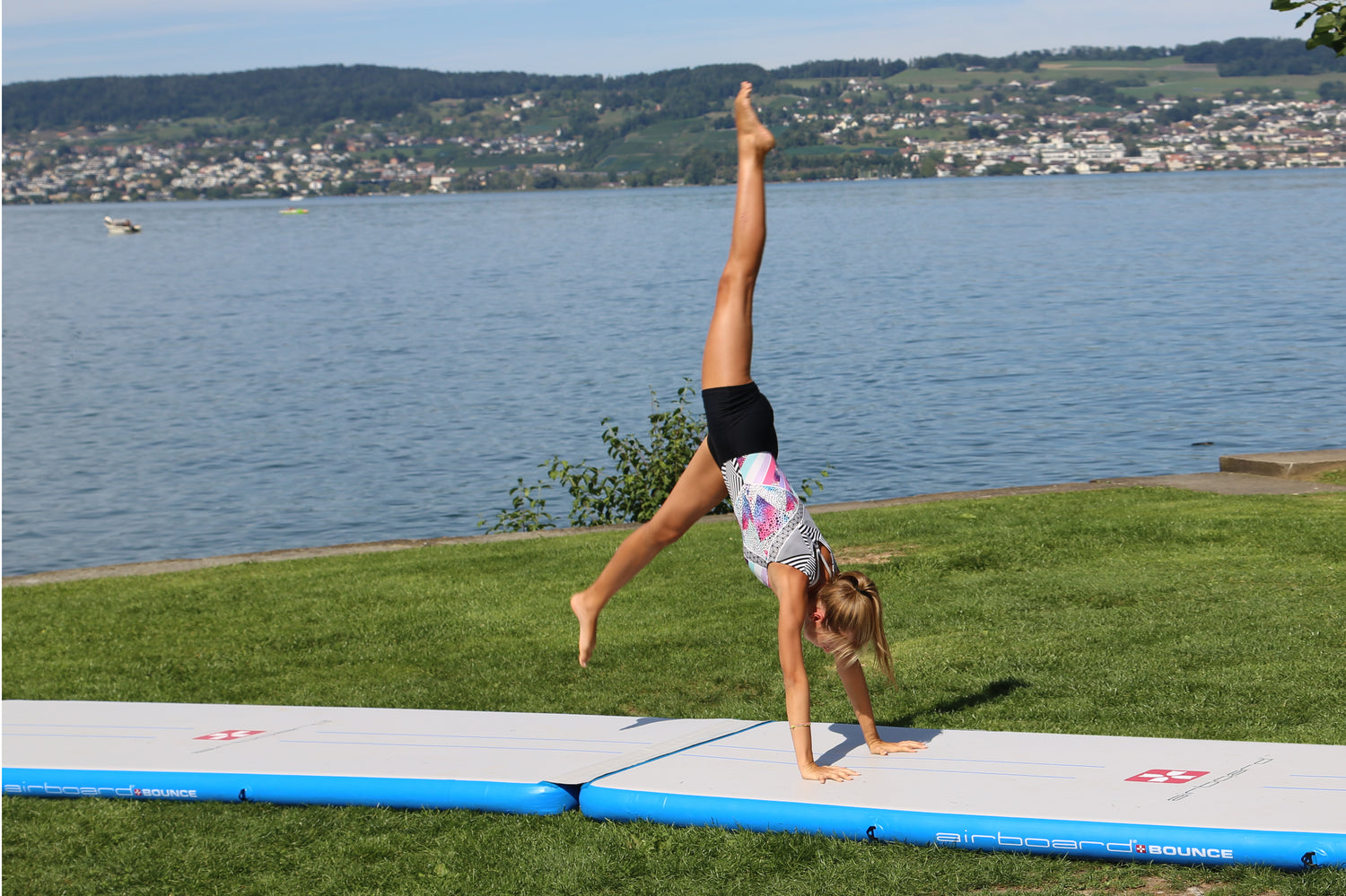 Die AirTrack Matte ist nicht nur ein sicheres Turngerät sondern lässt sich auch sonst sehr vielseitig einsetzen. Z.B. als Badeplattform oder als Schlafmatte